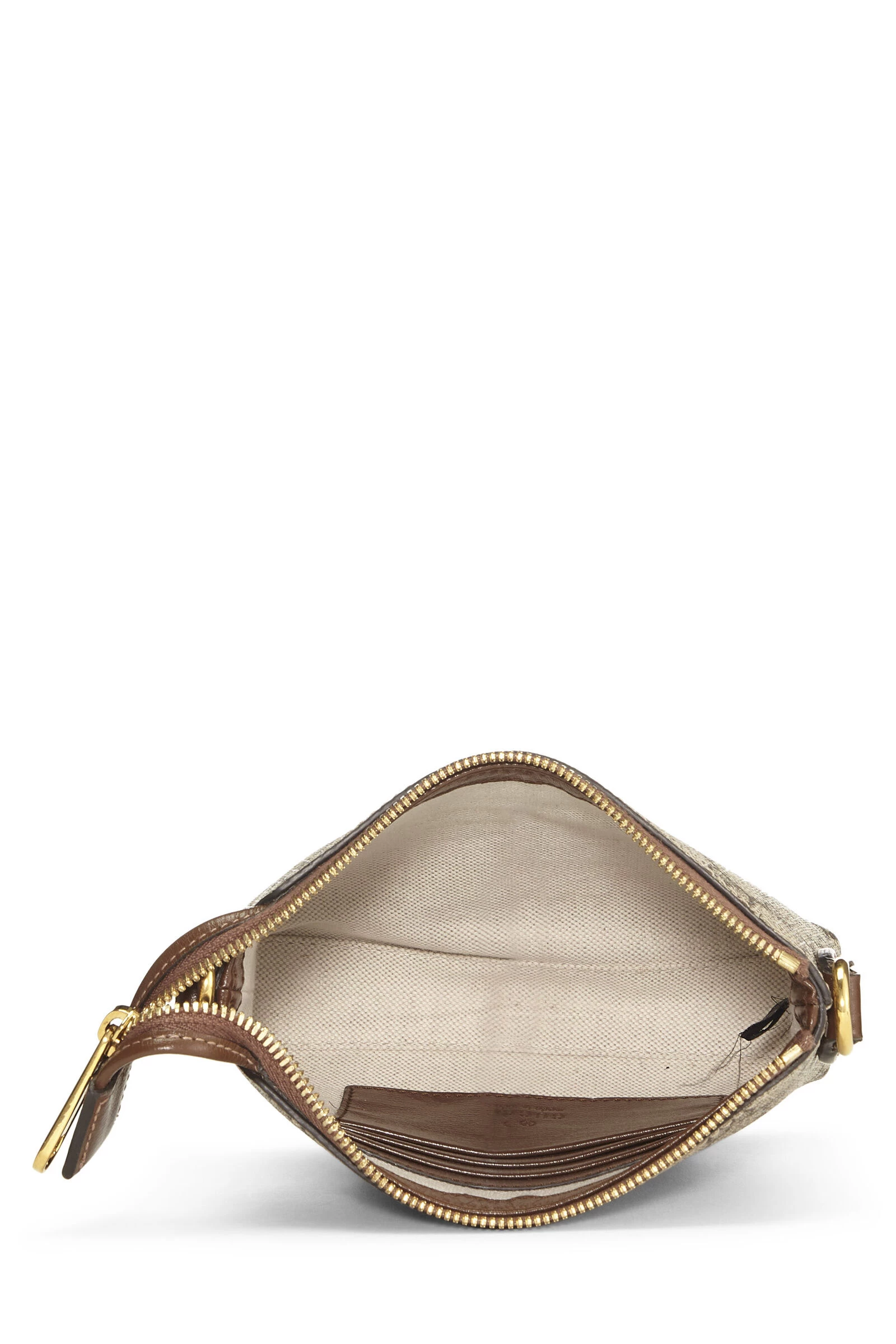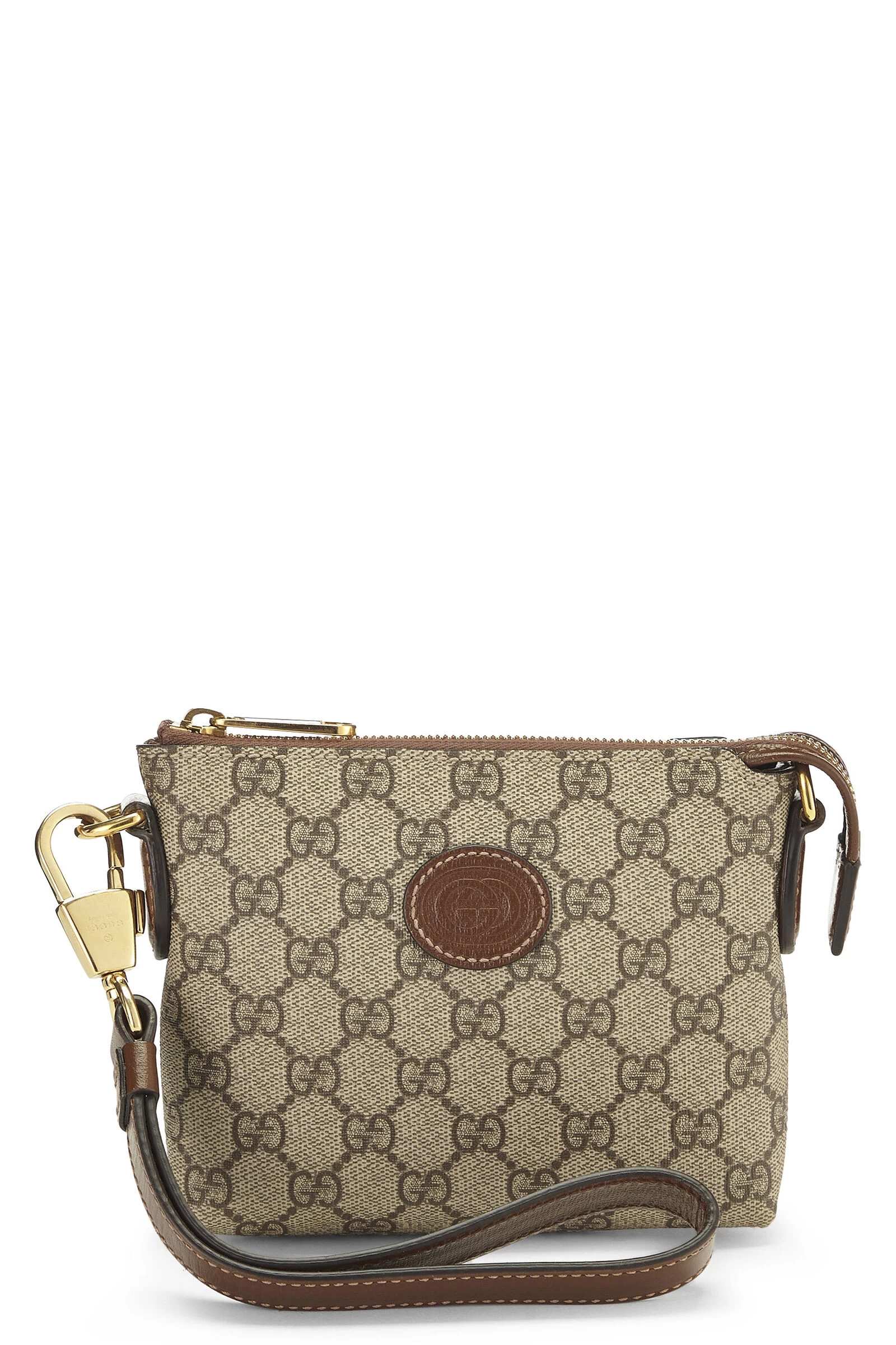 A chic and updated version of the classic wristlet, this convertible wristlet is dynamic and versatile and you’ll be taking it with you everywhere. Rendered in ‘GG’ coated canvas with deep brown leather trim and finished with gold-tone hardware. What makes this wristlet so unique is the addition of a canvas shoulder strap. No matter your mood and bag-toting needs, the versatility of this bag is super exciting.