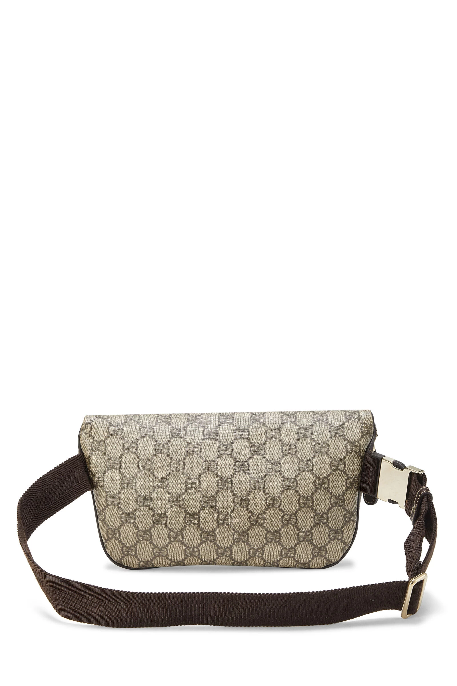 This Gucci waist pouch is rendered in the house’s beige Original GG Supreme coated canvas. To keep the coloring consistent throughout, it’s trimmed in brown leather with an adjustable canvas strap that’ll feel ultra-comfortable sitting on your waist. Pale gold-tone hardware elevates the profile, adding small doses of shine throughout. Make errands-running less stressful with yours fastened to your waist and your essentials stashed inside.