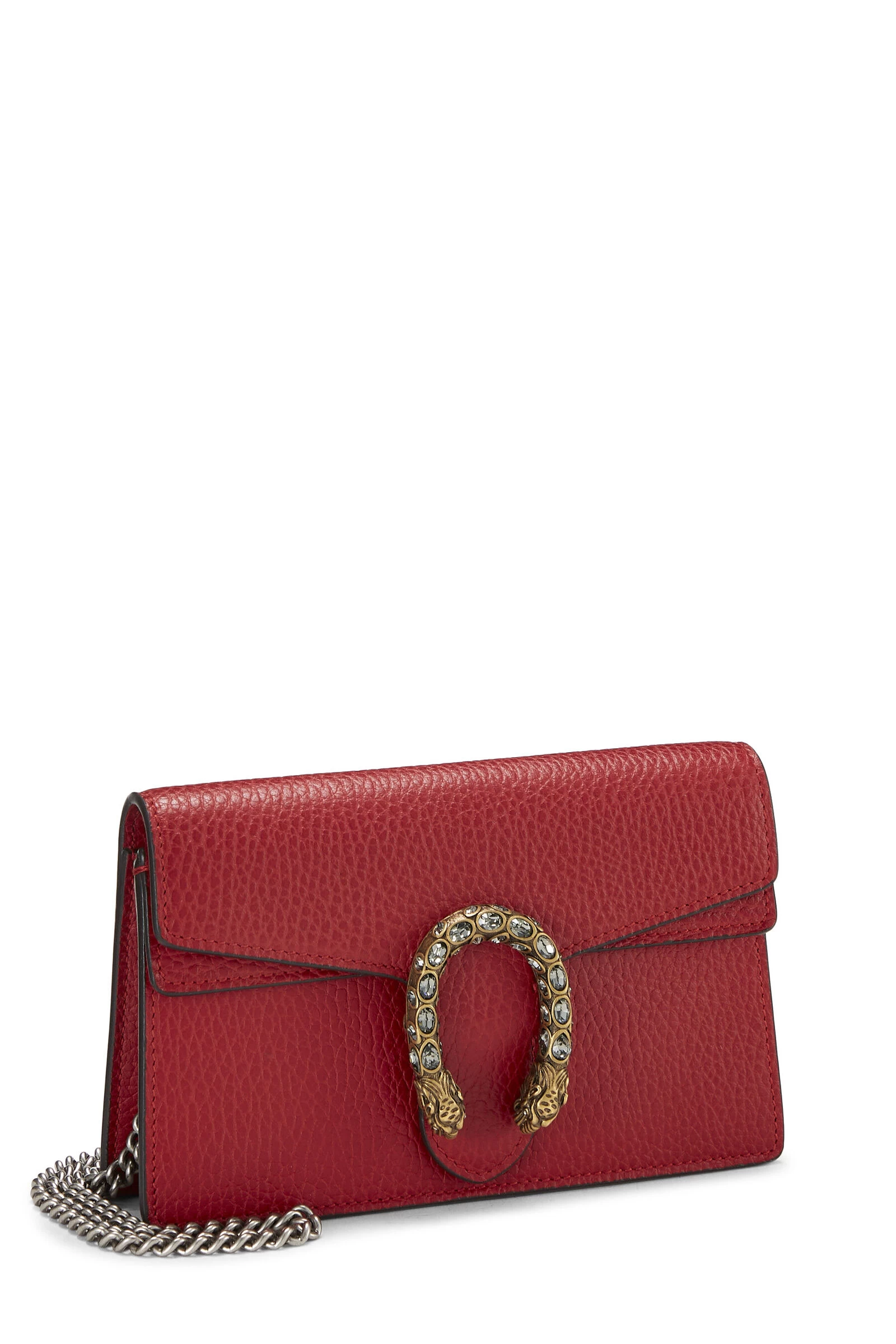 An investment in timeless Italian style, Gucci’s super mini Dionysus bag is rendered in red grained leather and accented with a crystal and antiqued metal tiger head in reference to the Greek god Dionysus. The bag features a detachable chain-link shoulder strap for versatile carry.