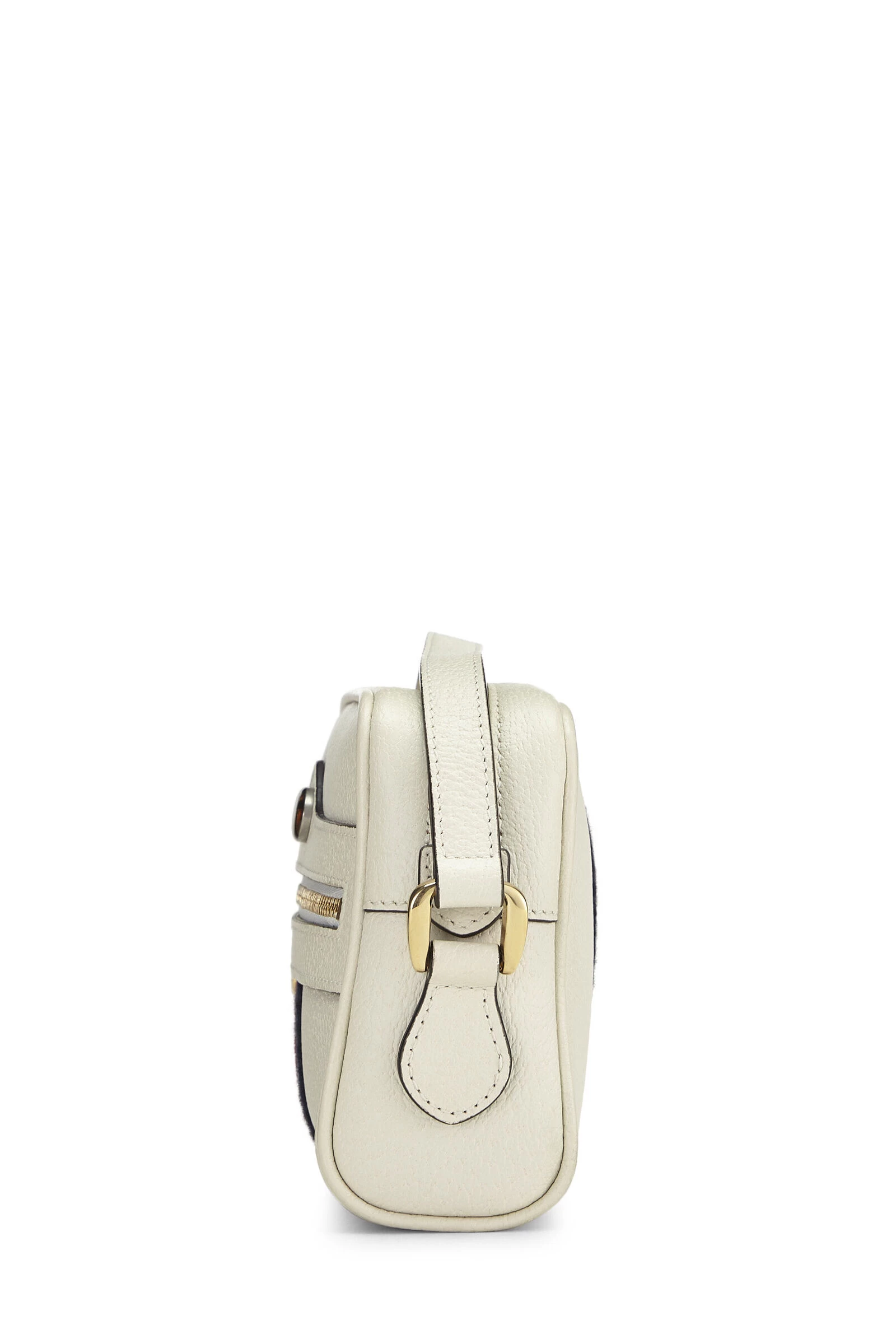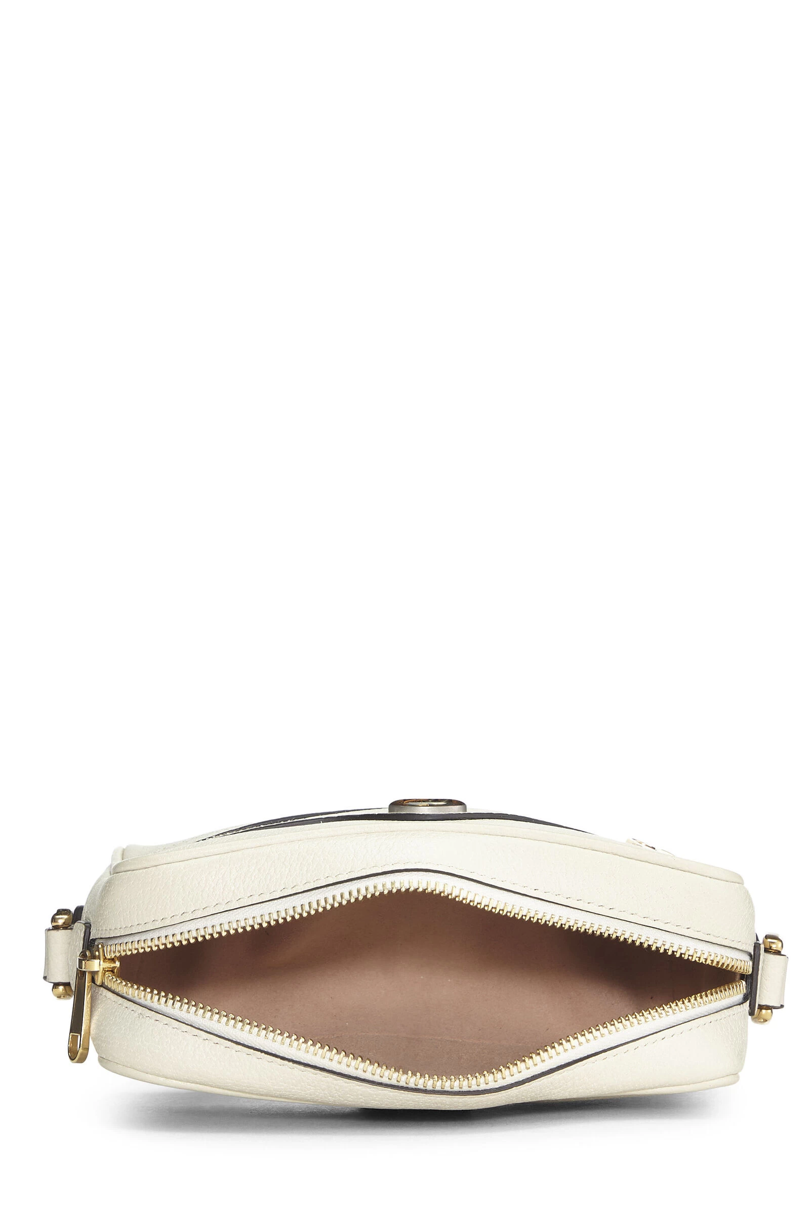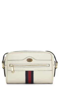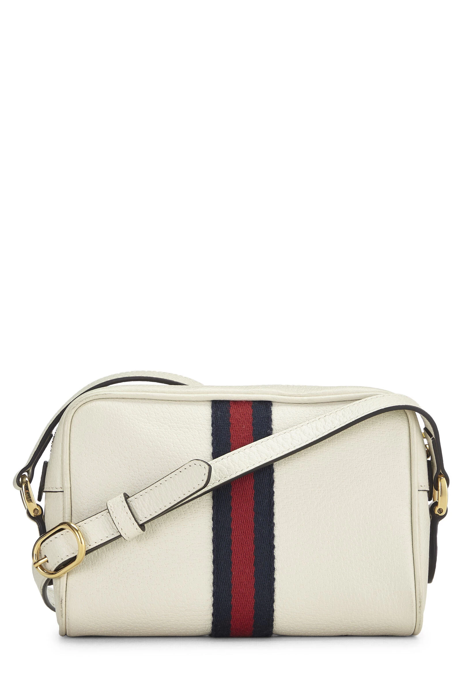 Debuted in the Cruise 2018 runway collection, Gucci’s vintage-inspired Ophidia line features a GG logo tab and Web stripe across all silhouettes. This version is crafted in white leather with gold-tone hardware.
