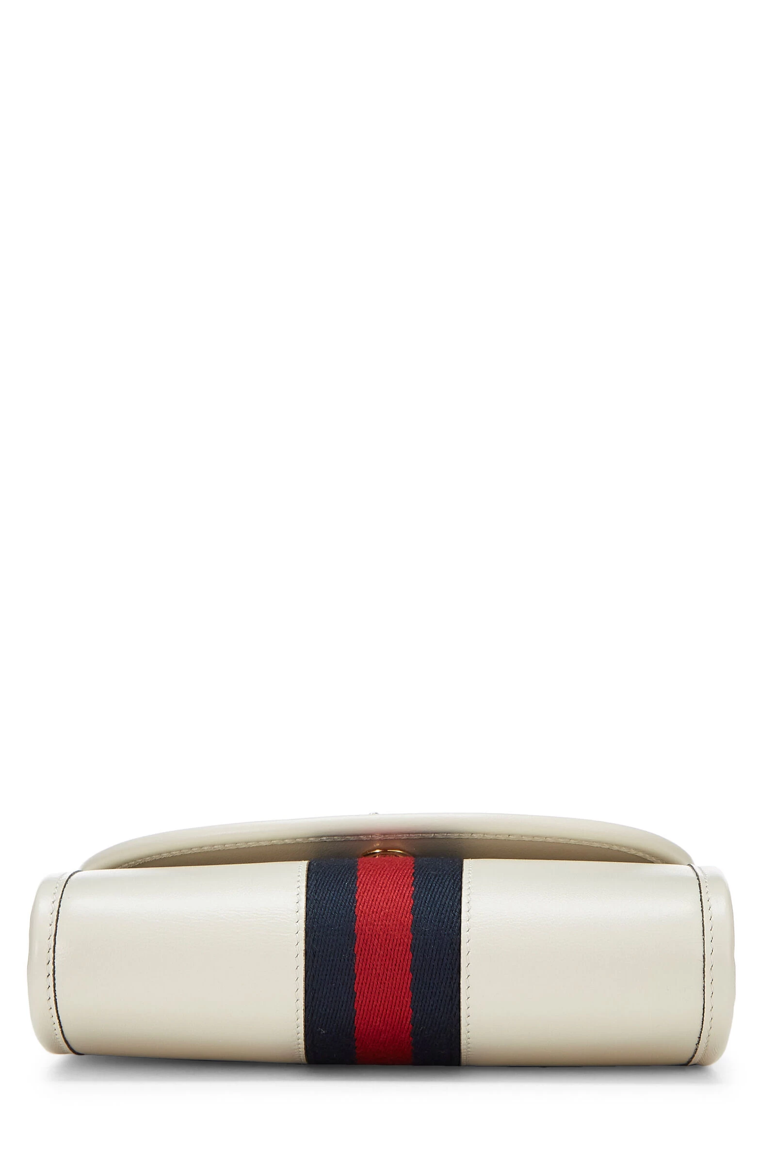 A sleek statement piece from Gucci, the Rajah shoulder bag, featured here in the mini size, is crafted in grained white leather, accented with navy and red signature canvas Web panel, multi-tone tiger embellishment and finished with gold-tone hardware. The bag features a detachable chain link shoulder strap for versatile wear and carry.