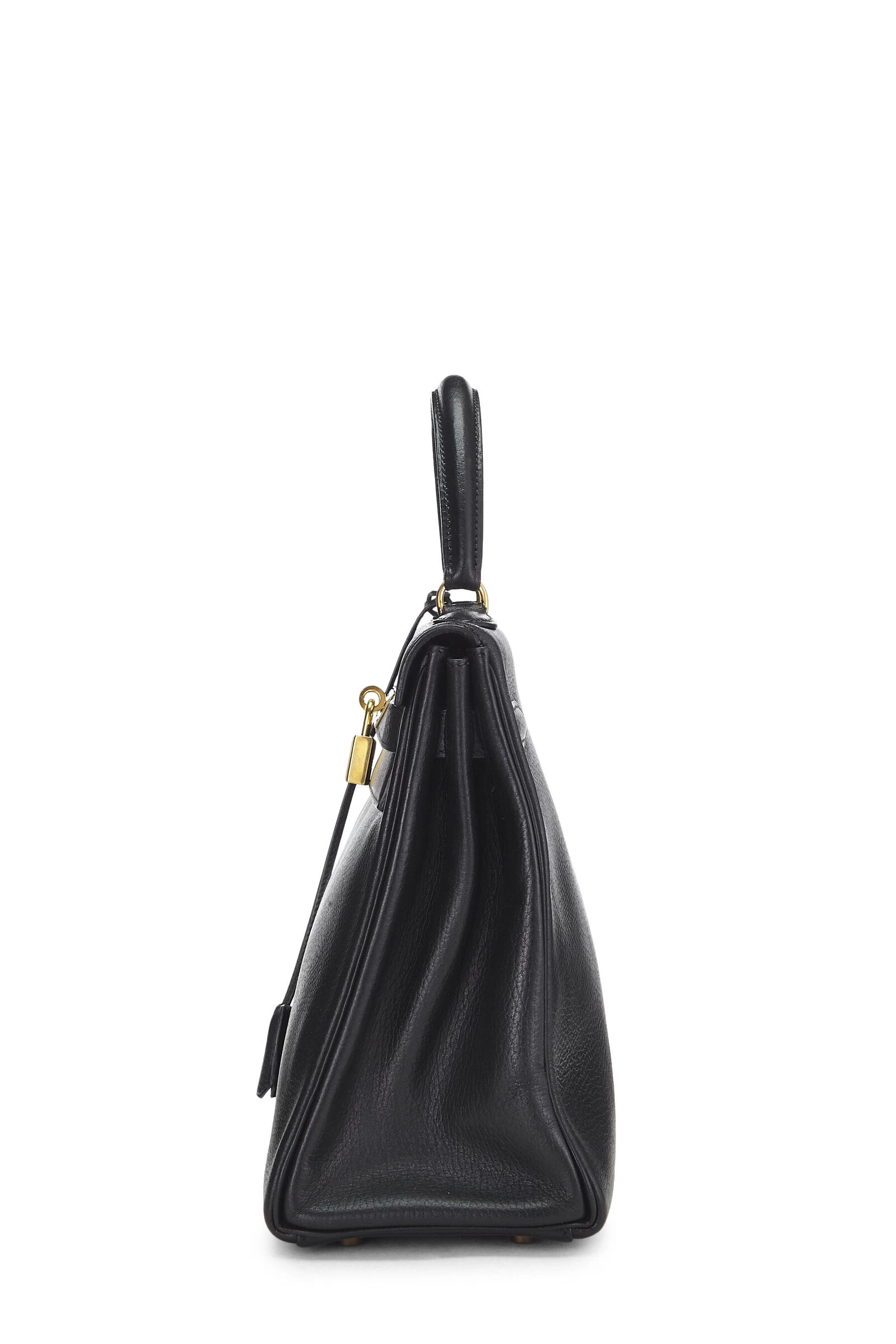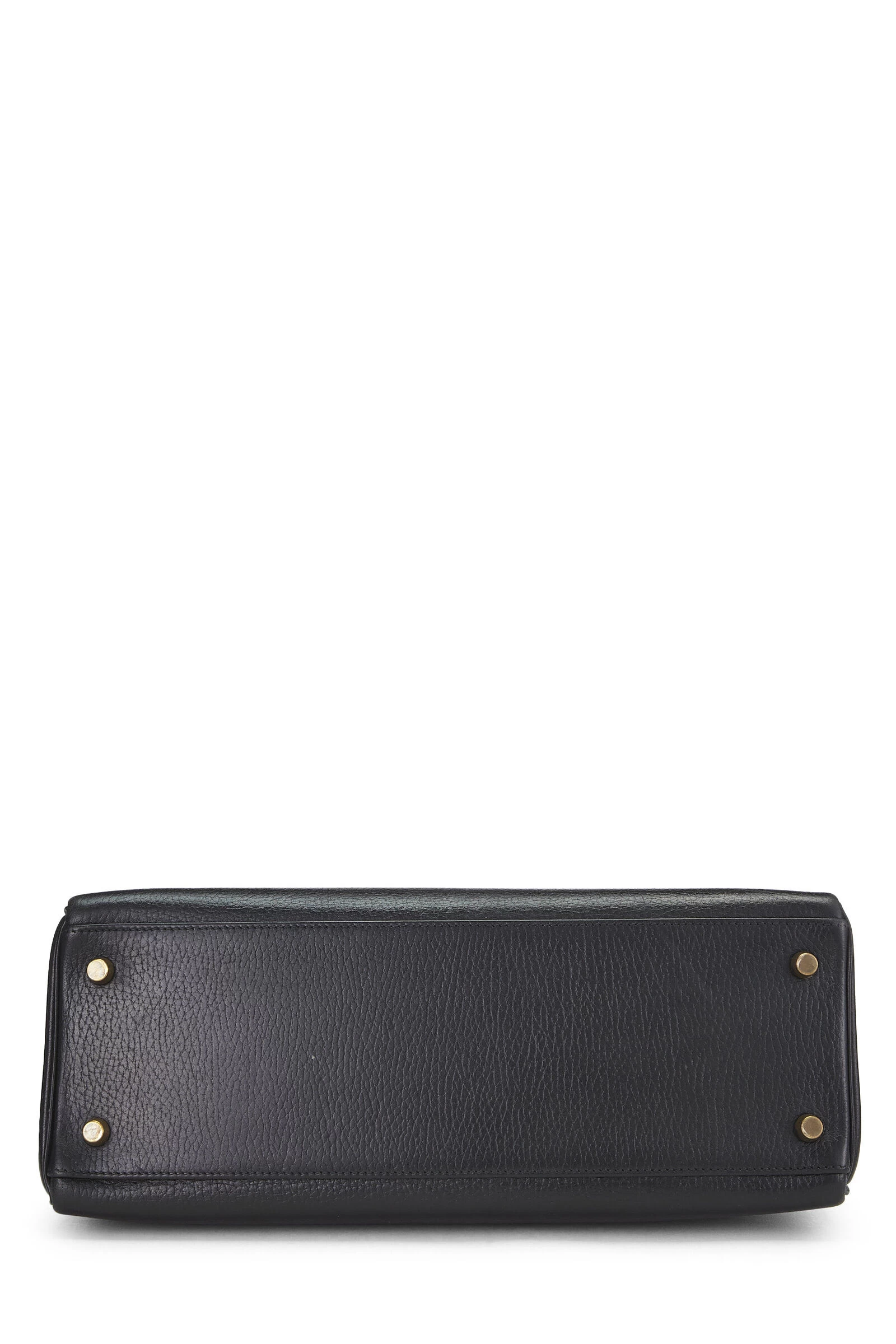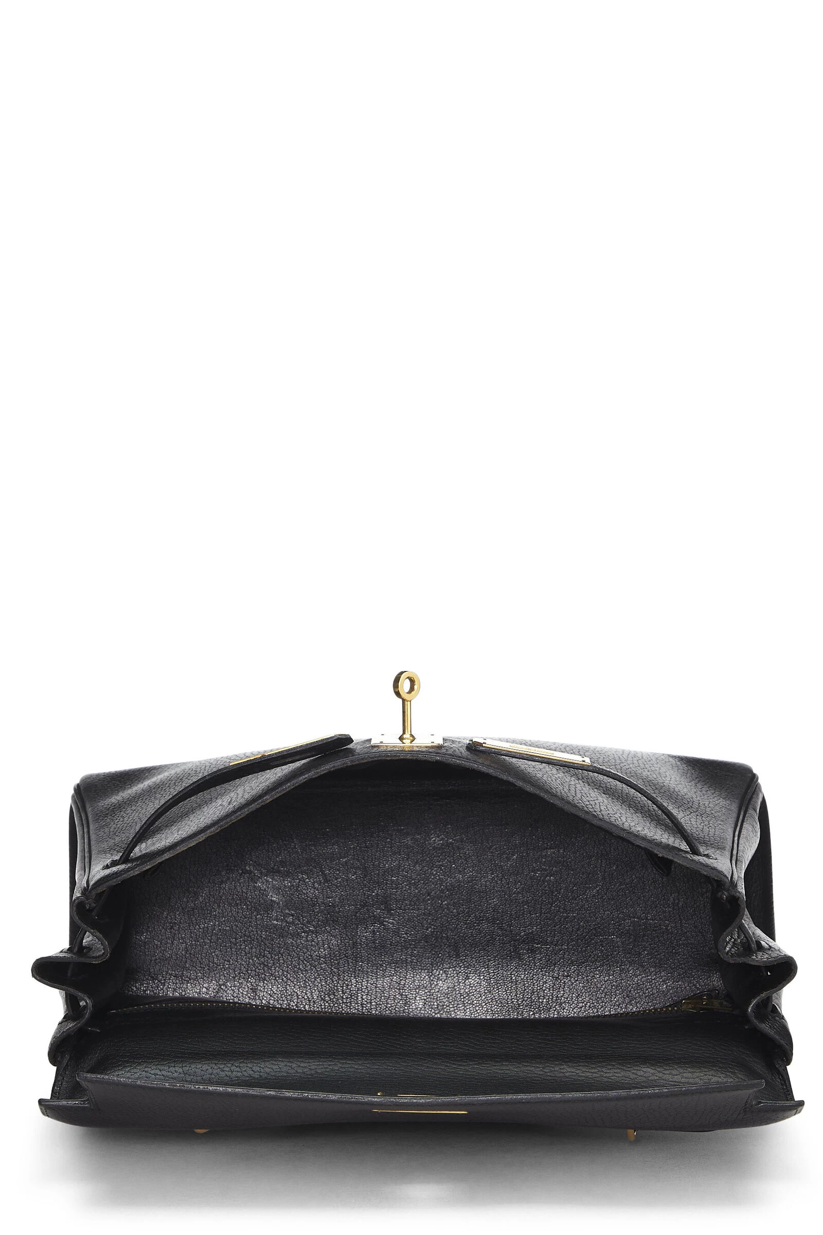Classic black Ardennes leather Kelly accented with gold-plated hardware. Ardennes is a sturdy calfskin leather with raised visible grain known for its durability against moisture, scratches and slouching. Includes lock, two keys and clochette.