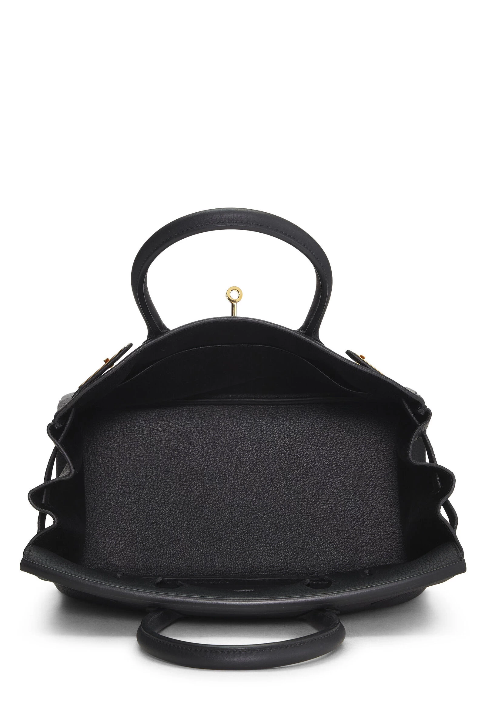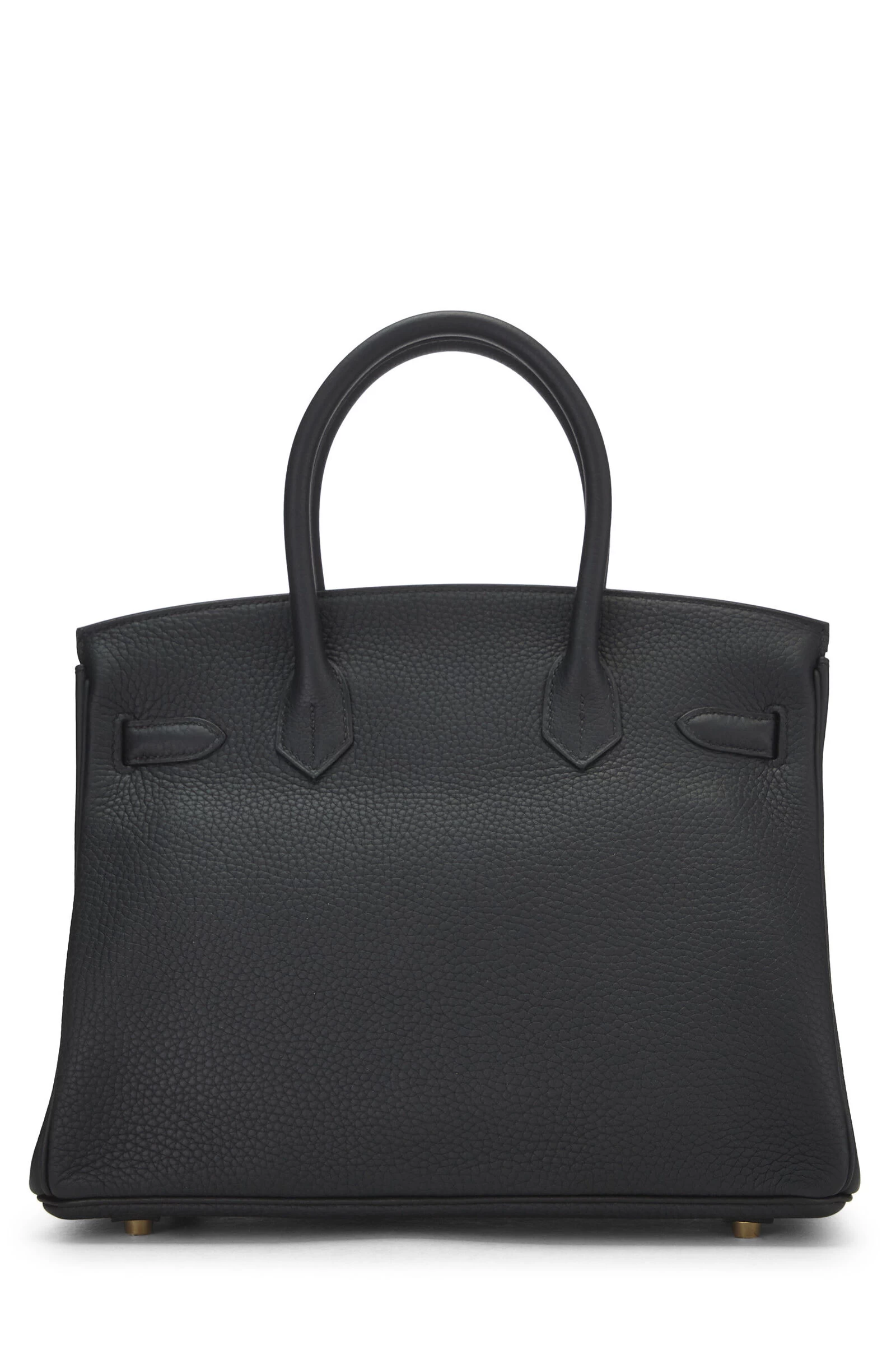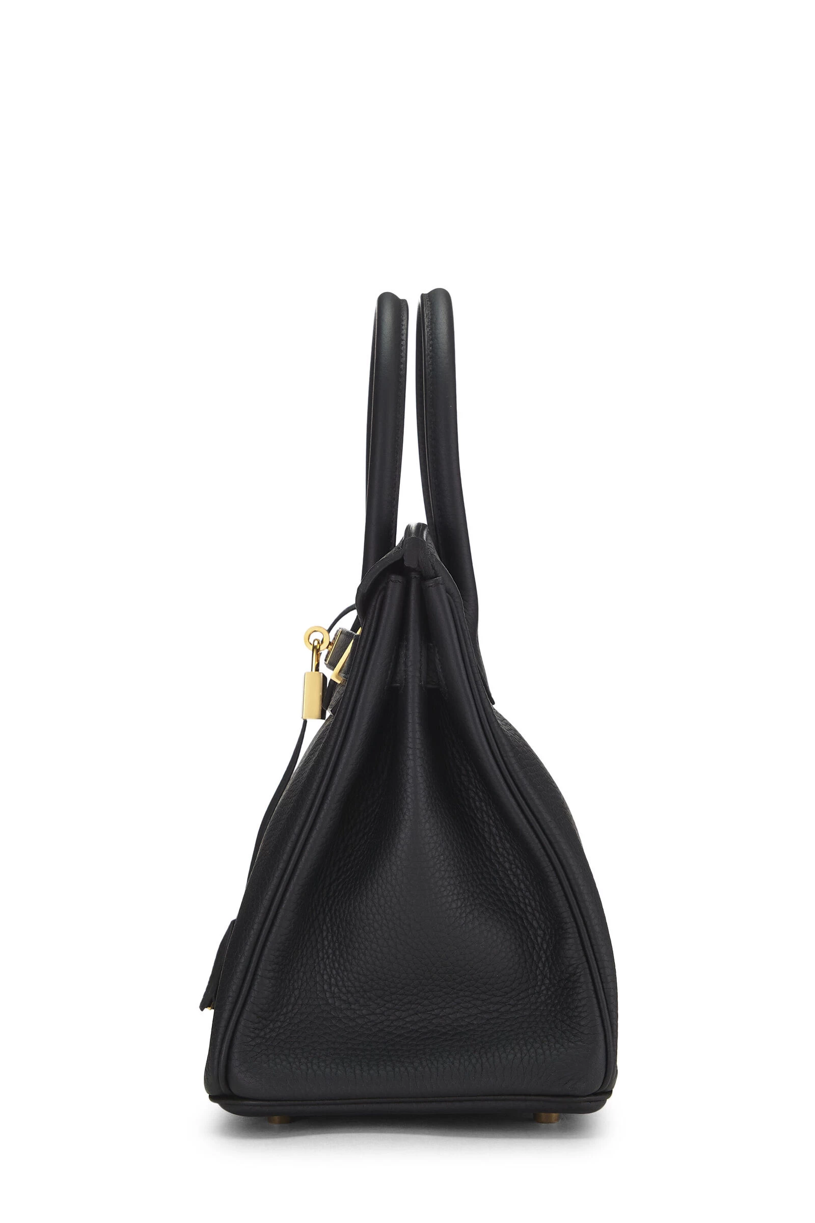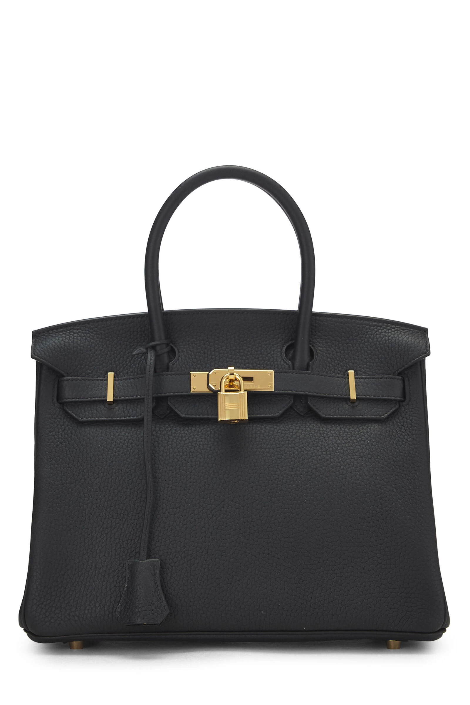 Classic Birkin rendered in Black Clemence leather and accented with gold-plated hardware. Clemence leather is a thick and durable calfskin with a medium textured grain known for resisting scratches, its ability to be refurbished, and a soft relaxed feel with use. Includes lock, two keys and clochette.