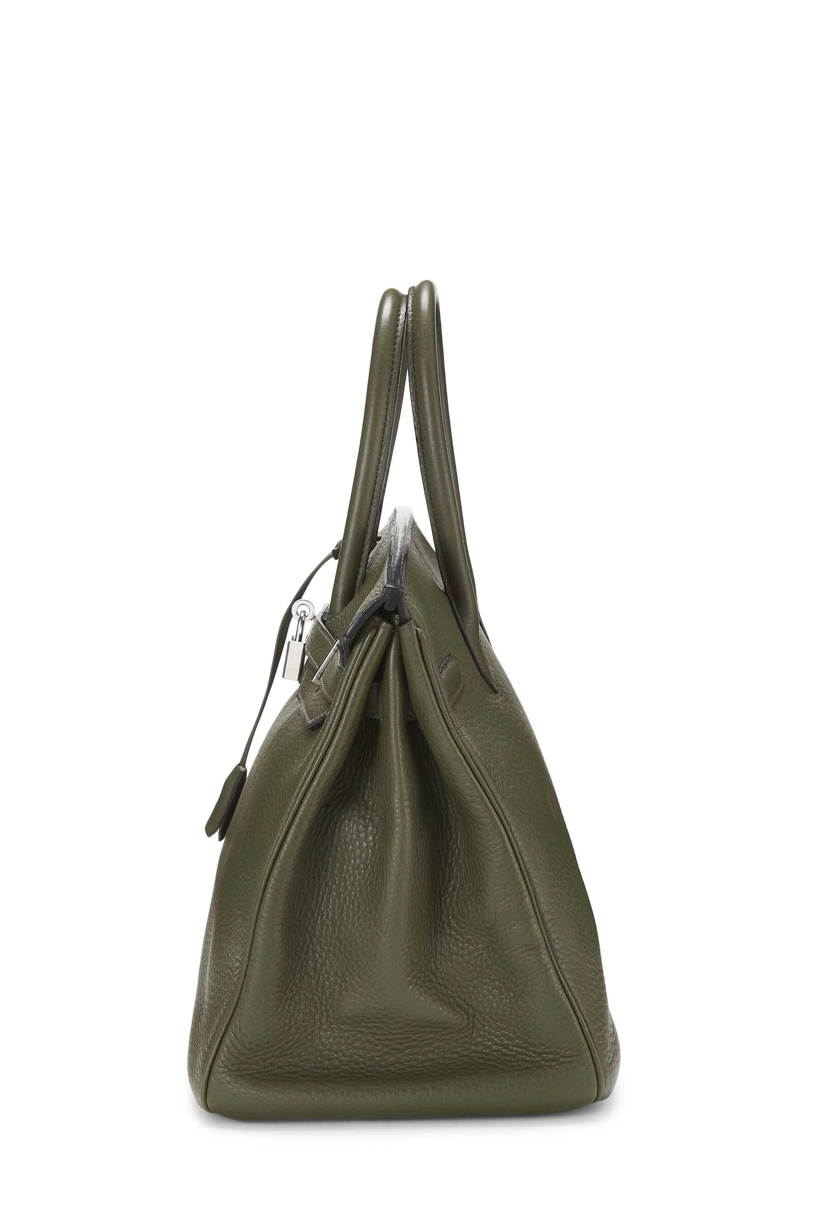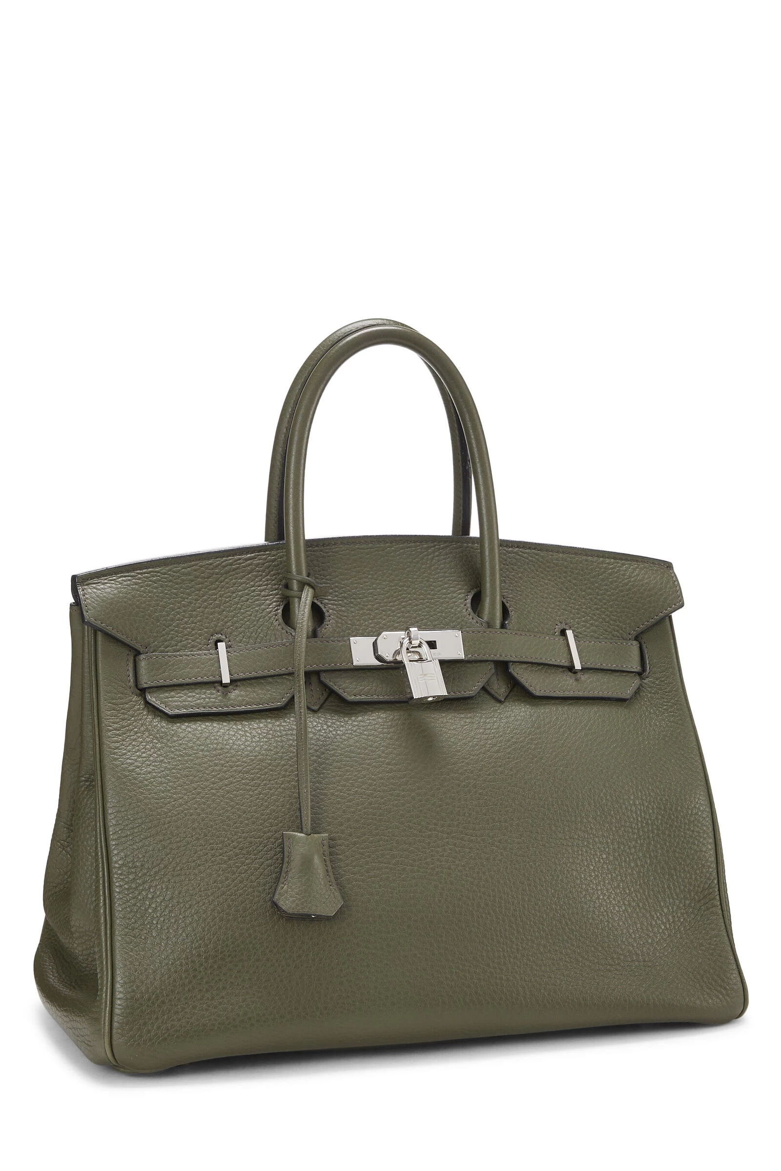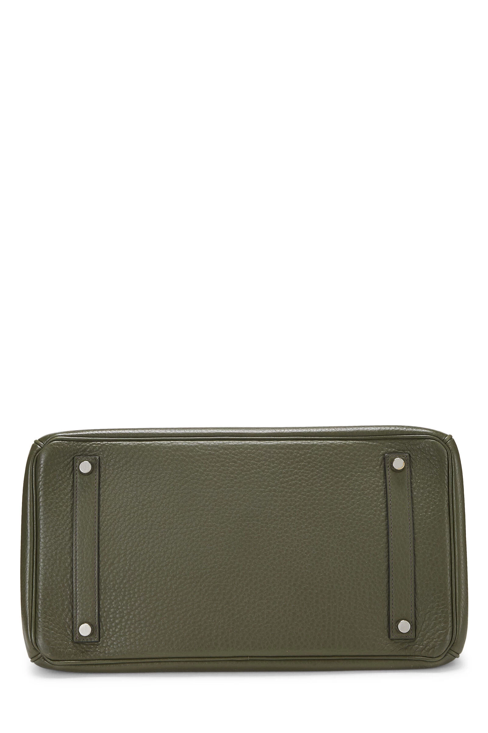A favorite color among collectors, this Vert Olive green Birkin is rendered in Togo leather and accented with Palladium-plated hardware. Includes lock, two keys and clochette.