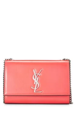 A playful and eye-catching take on the classic Saint Laurent Kate bag, this small shoulder bag is rendered in hot pink patent leather and accented with silver-tone logo hardware on the flap.