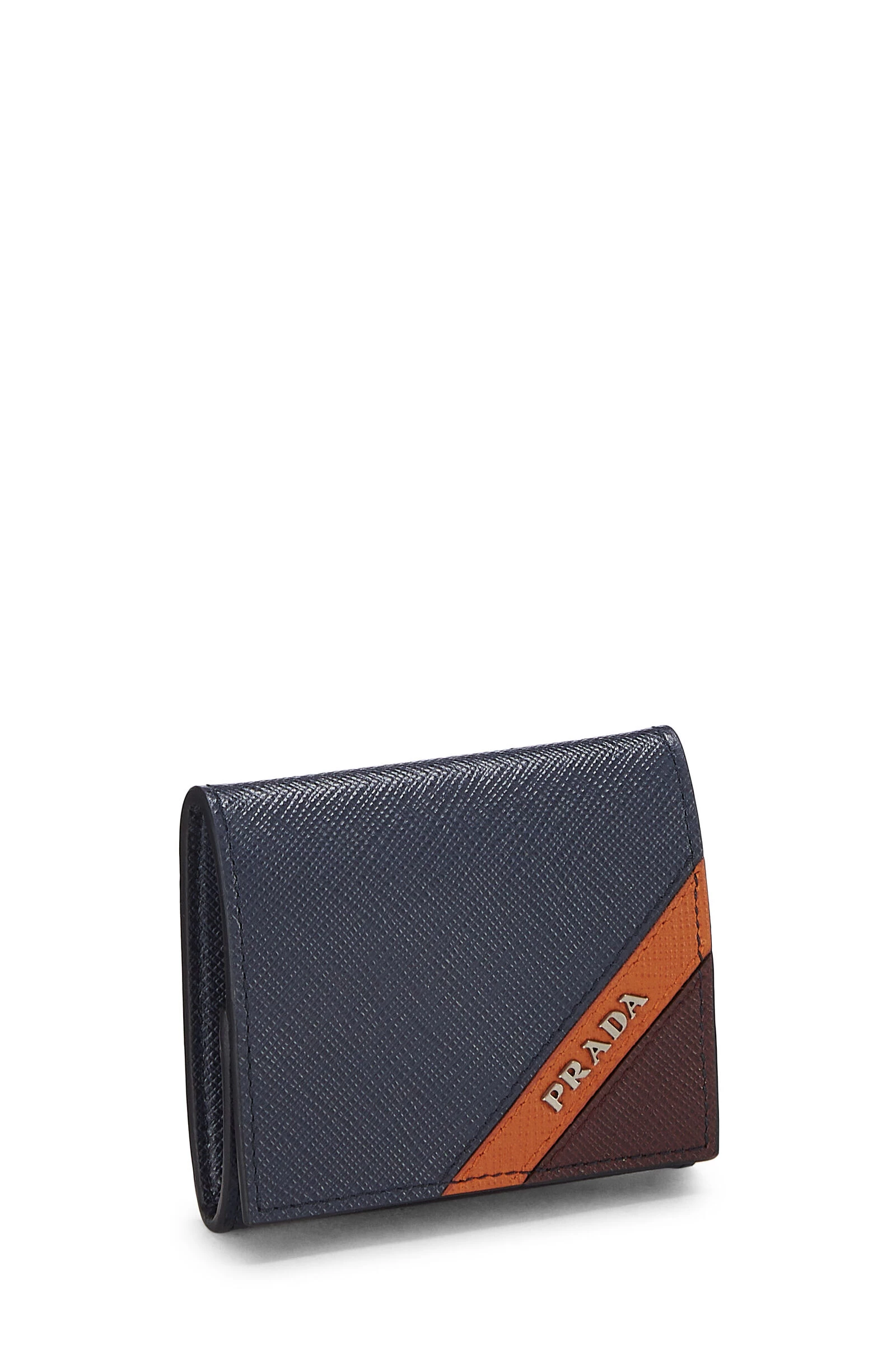 Classic Prada compact coin purse crafted in black Saffiano leather, featuring a red contrast stripe and silver-tone logo hardware on the front flap.