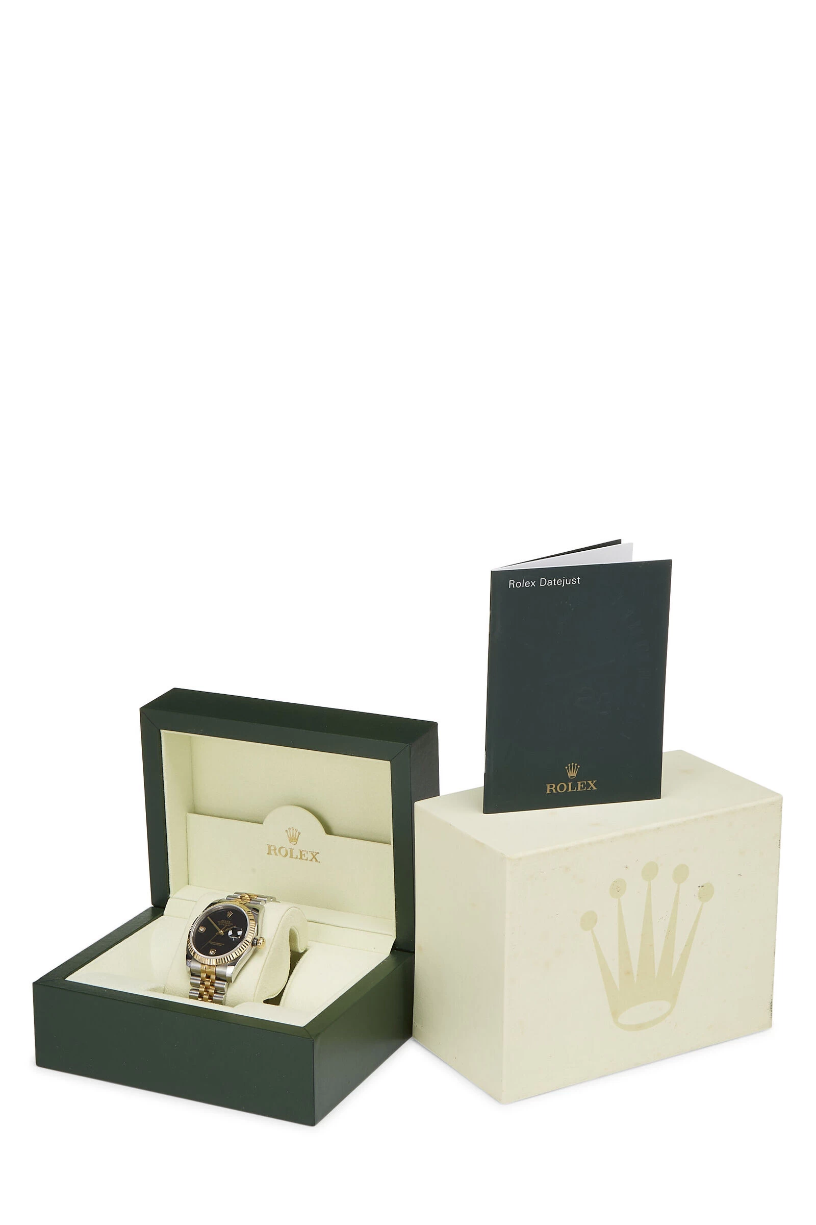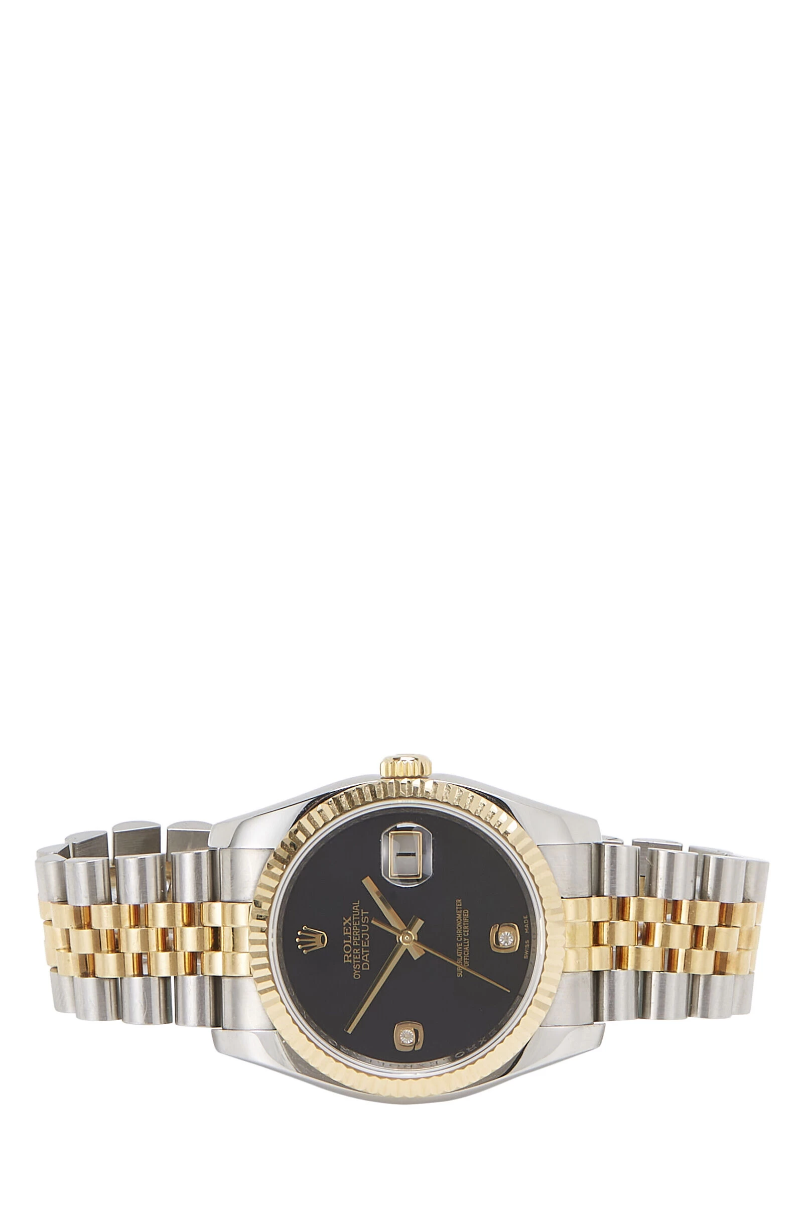 With impeccable craftsmanship and classic aesthetics, the Rolex Datejust watch is a timeless investment. First debuted in 1945, the Datejust watch features automatic movement, a 36mm Oyster case with an 18k yellow gold fluted bezel, and an onyx black dial with Arabic and diamond 6 and 9 hour markers. This watch is finished with scratch-resistant sapphire crystal, a magnified Cyclops date window, and a stainless steel & 18k yellow gold Jubilee bracelet with Hidden Crownclasp. Includes branded box and papers. Serial number V55xxxx