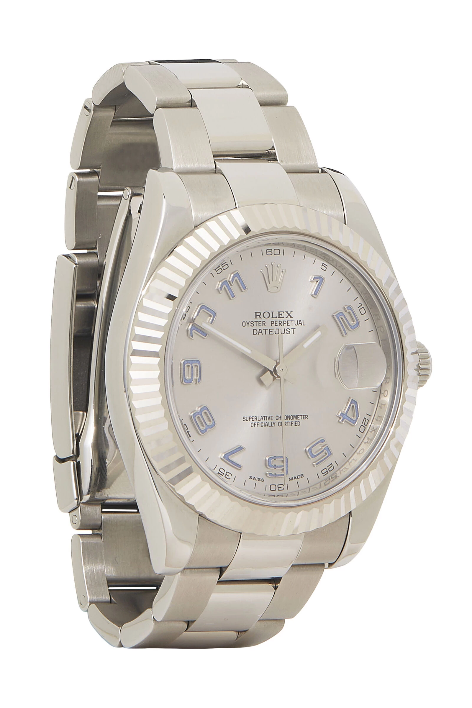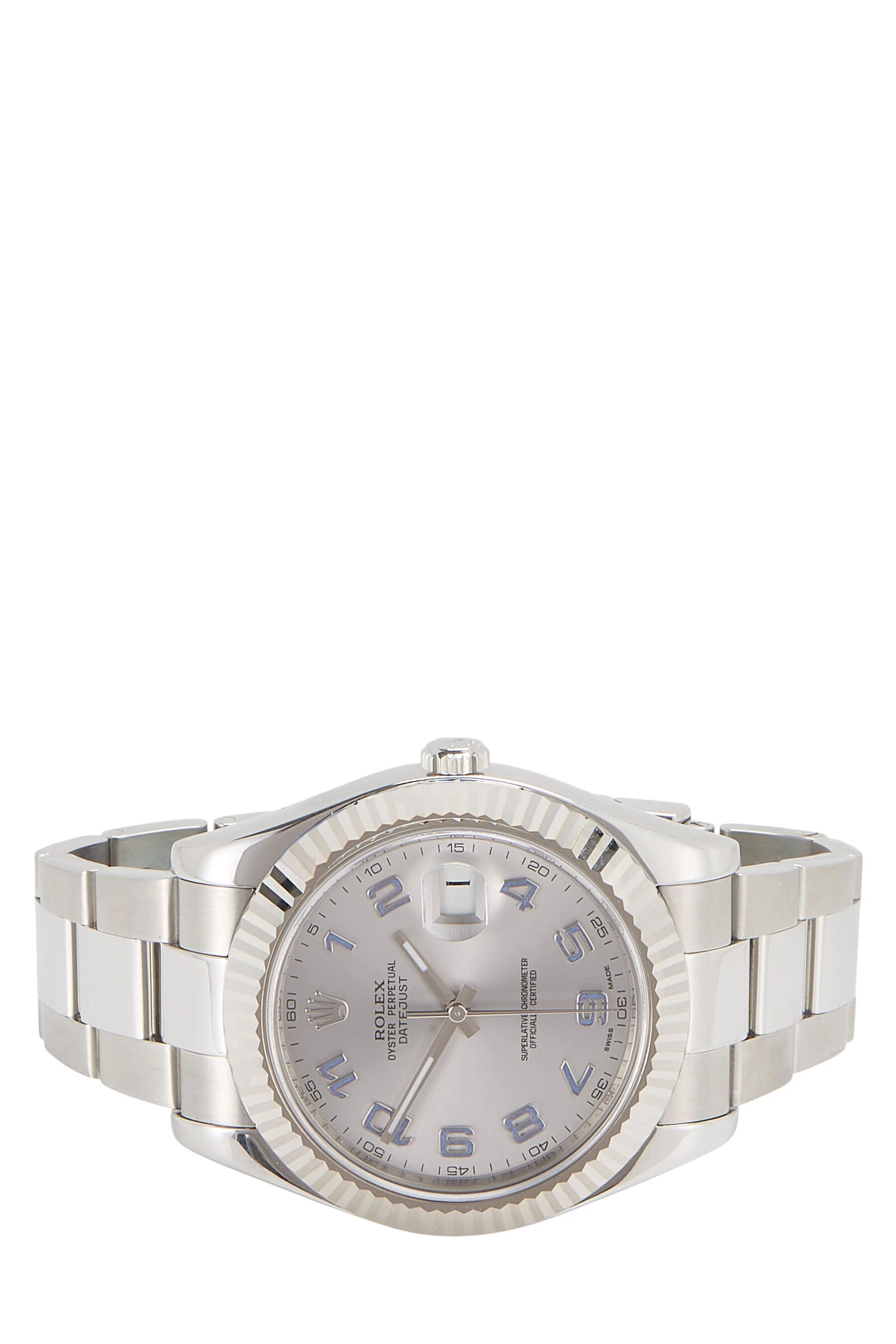 With impeccable craftsmanship and classic aesthetics, the Rolex Datejust watch is a timeless investment. First debuted in 1945, the Datejust watch features automatic 3136 movement with quickset date function. This watch also features a stainless steel 41mm Oyster case with genuine scratch-resistant sapphire crystal and a magnified Cyclops date window, a stainless steel fluted bezel, and a silver dial with Arabic hour markers. Finally, it is finished with a stainless steel Oyster bracelet and clasp. Includes papers and branded box. Serial number G68xxxxx.