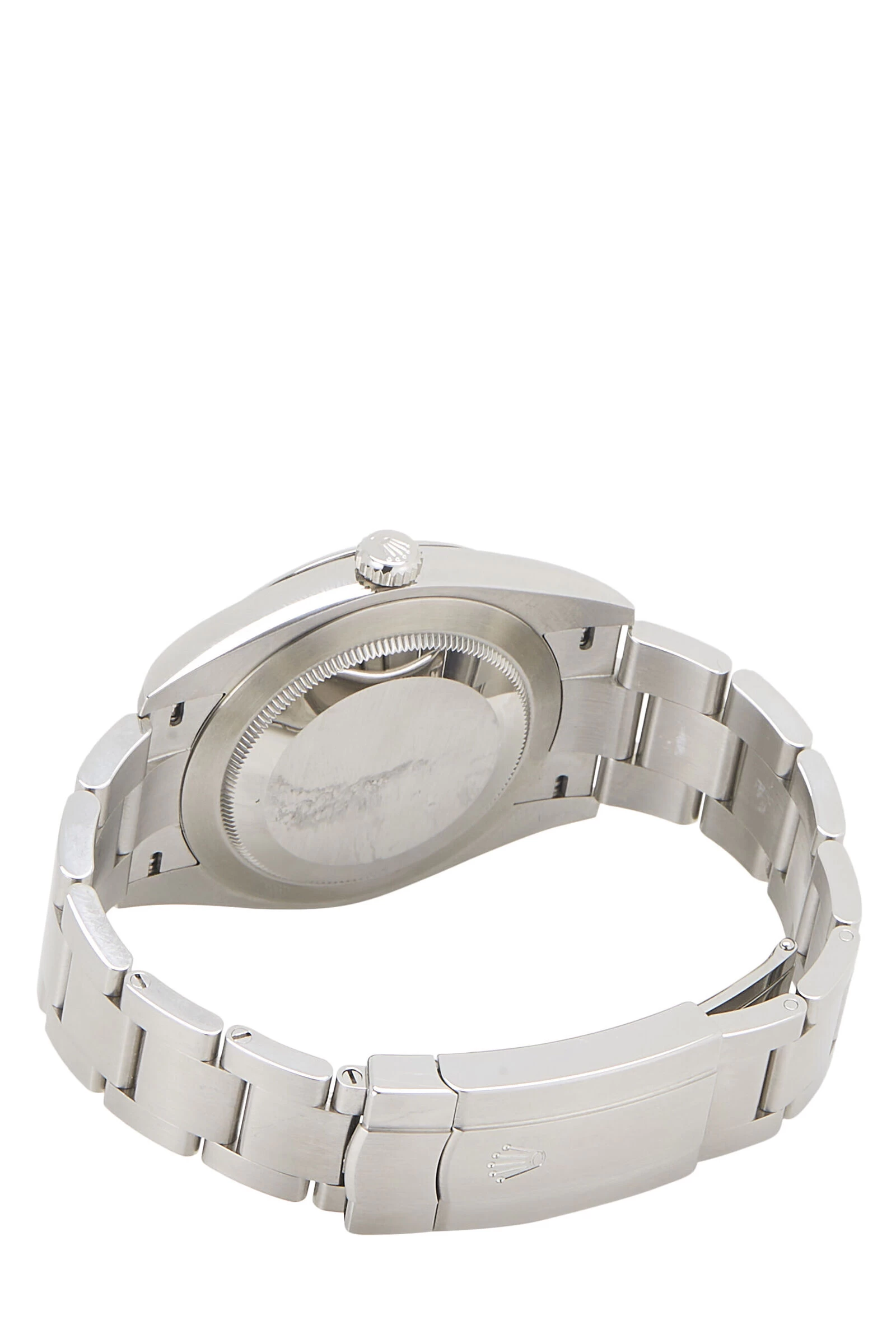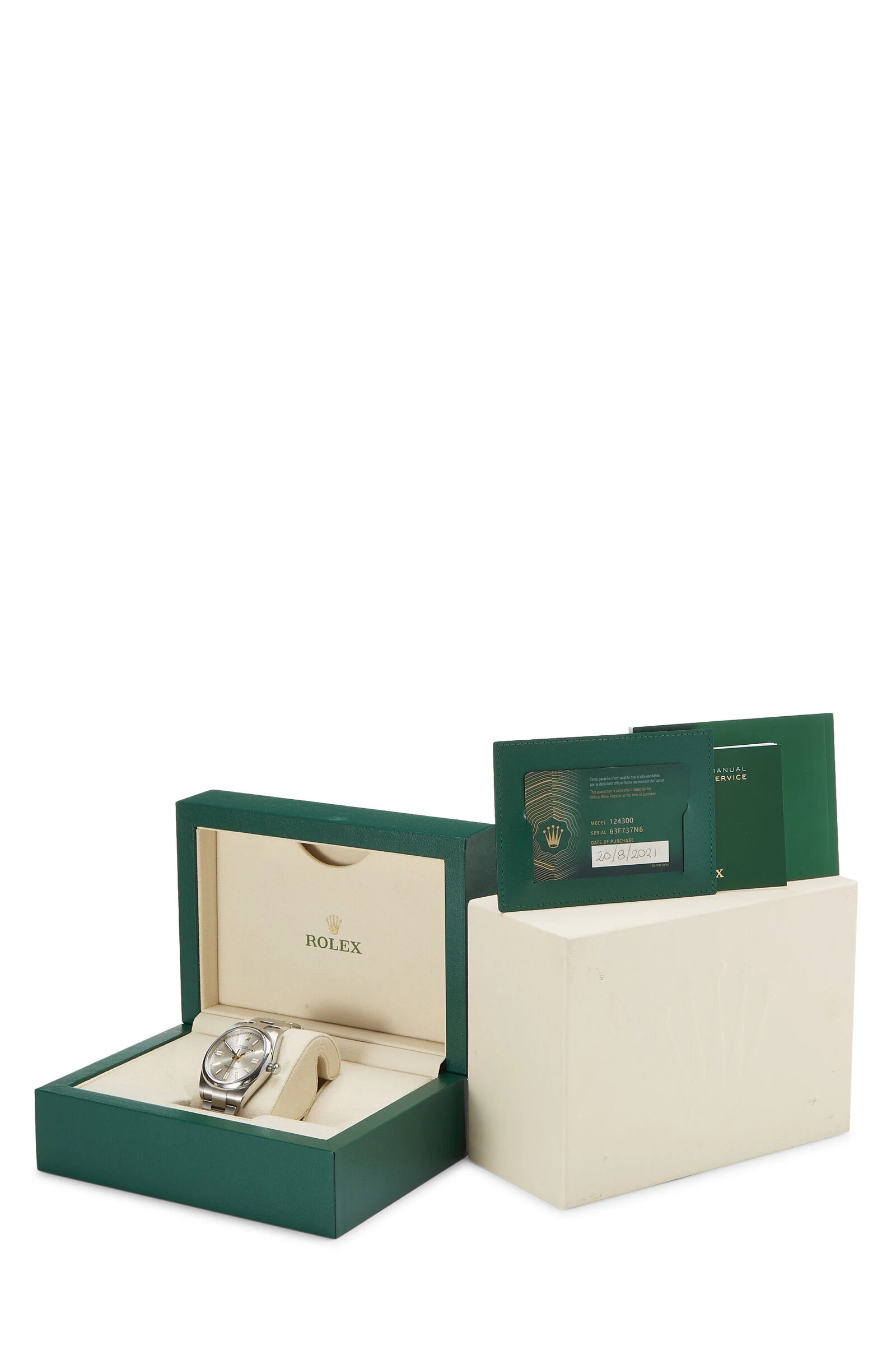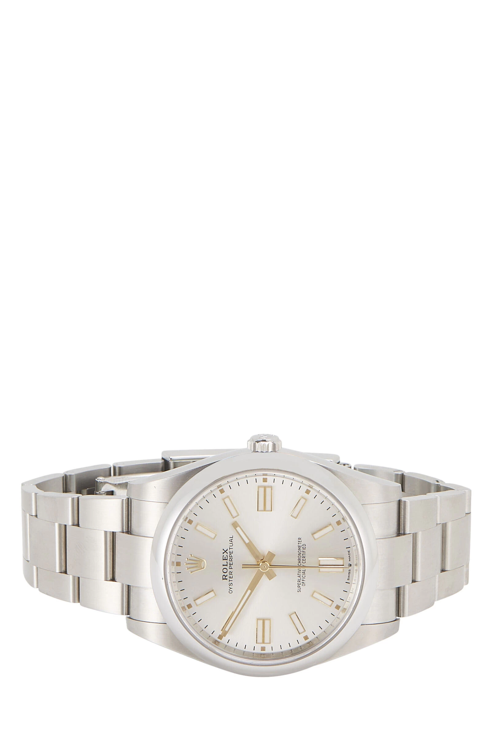With impeccable craftsmanship and classic aesthetics, the Rolex Oyster Perpetual watch is a timeless investment. This watch features automatic movement with quickset date function. This watch also features a stainless steel 41mm Oyster case with genuine scratch-resistant sapphire crystal, an stainless steel smooth bezel and a white dial with baton hour markers. Finally, it is finished with a stainless steel Oyster bracelet and clasp. Includes papers and branded box. Serial number 63Fxxxxx.