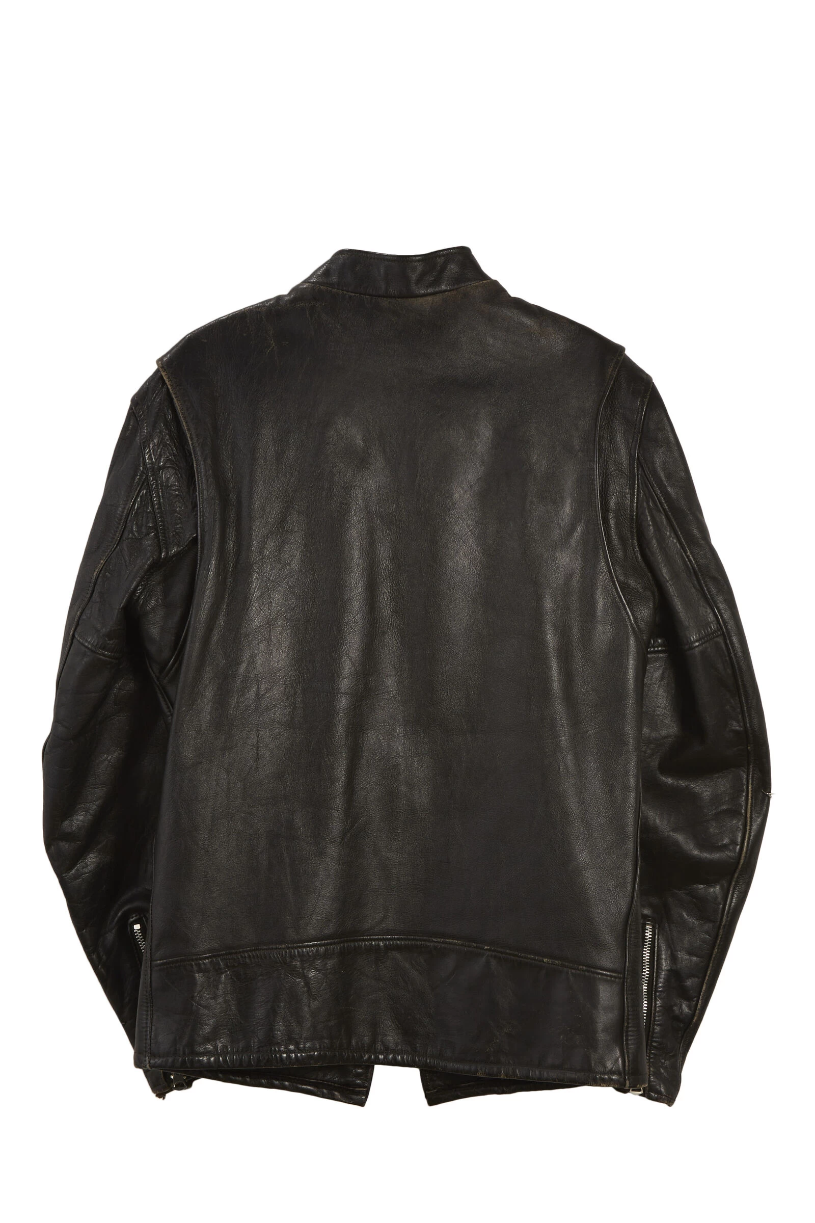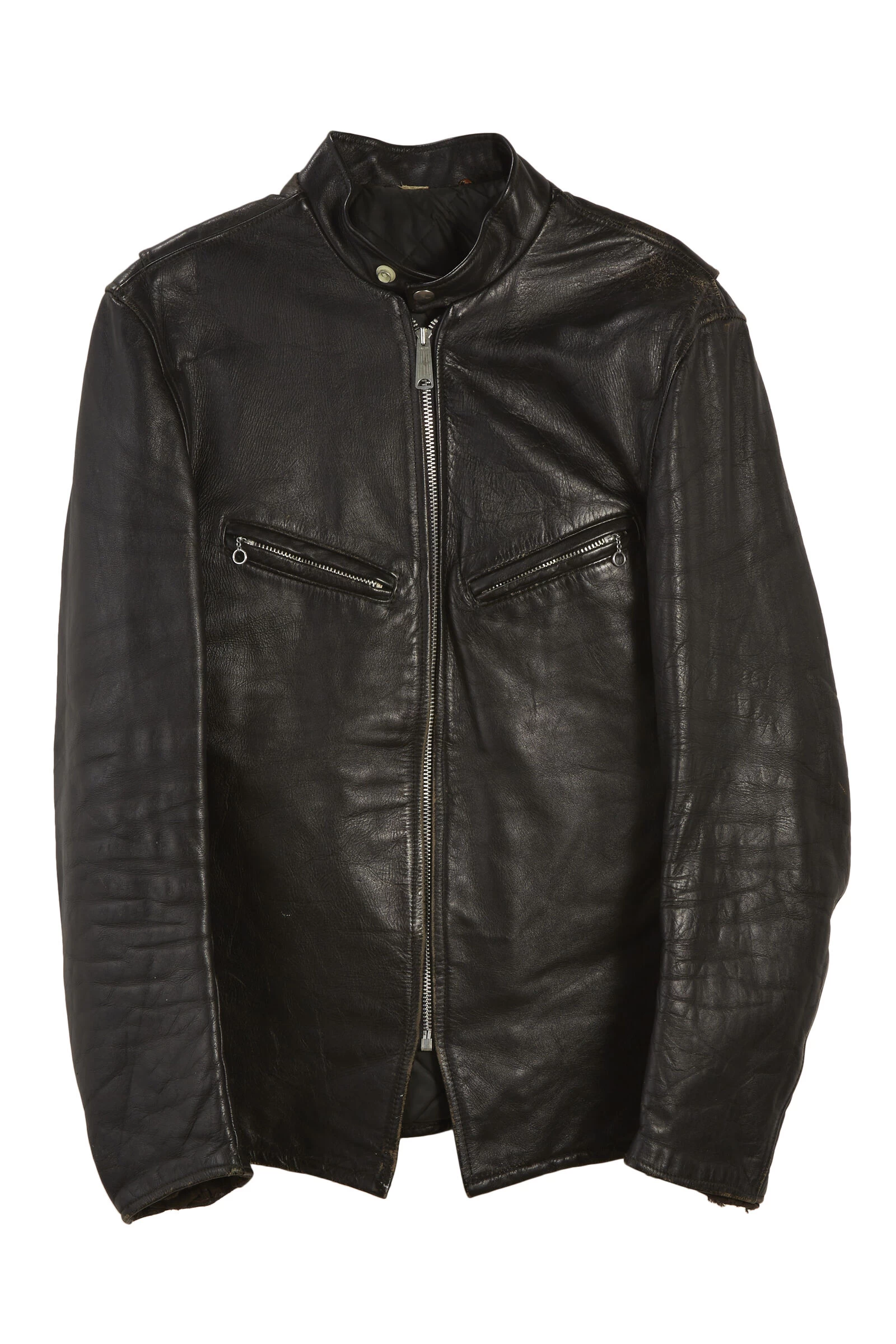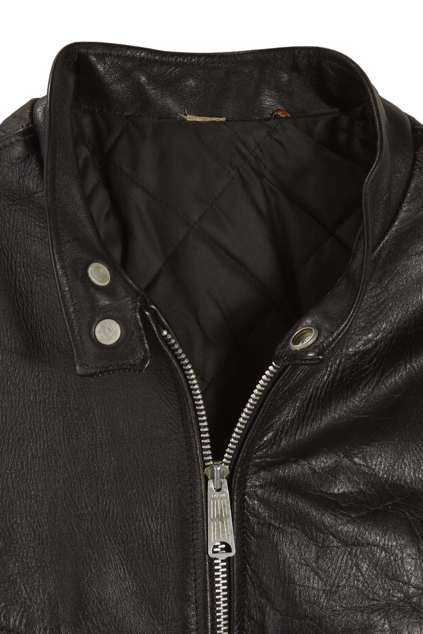 A vintage and highly collectible piece, this 1960s Schott jacket is crafted in black textured leather, featuring a classic zip closure, mock neck, zipped cuffs, and two zip pockets.