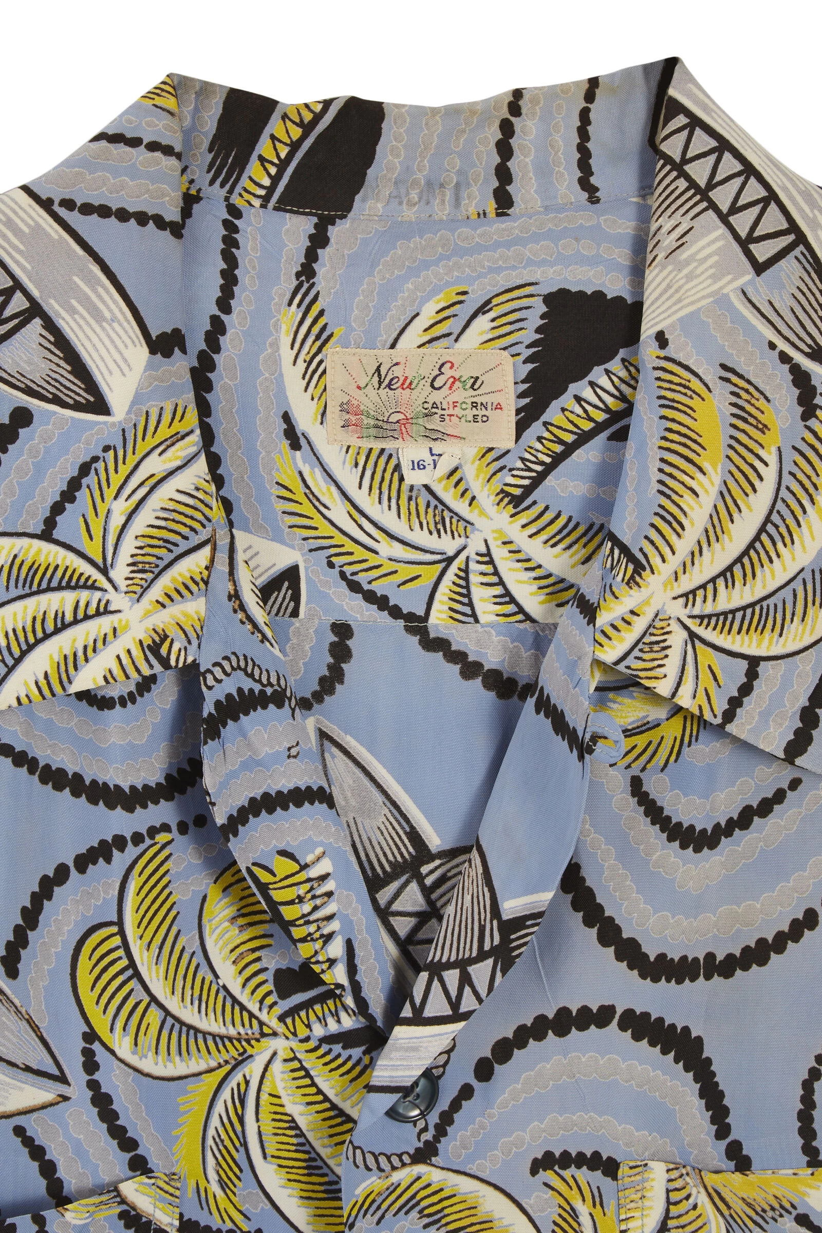 New Era original Hawaiian shirt featuring a palm tree and sombrero pattern throughout.
