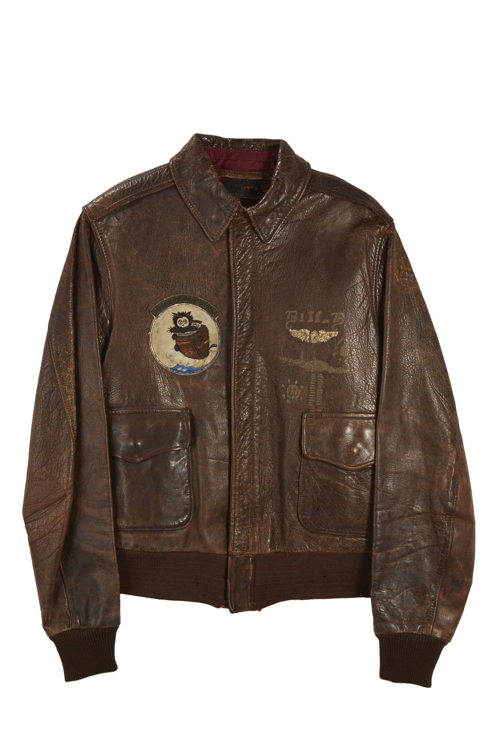 Close to eight decades old and in still in great wearable condition, this vintage WWII leather flight jacket is a both an excellent fashion item and a piece of history. Crafted in brown leather and features an embroidered patch on the front. The interior tag makes mention of the jacket belonging to a member of the US Air Force.