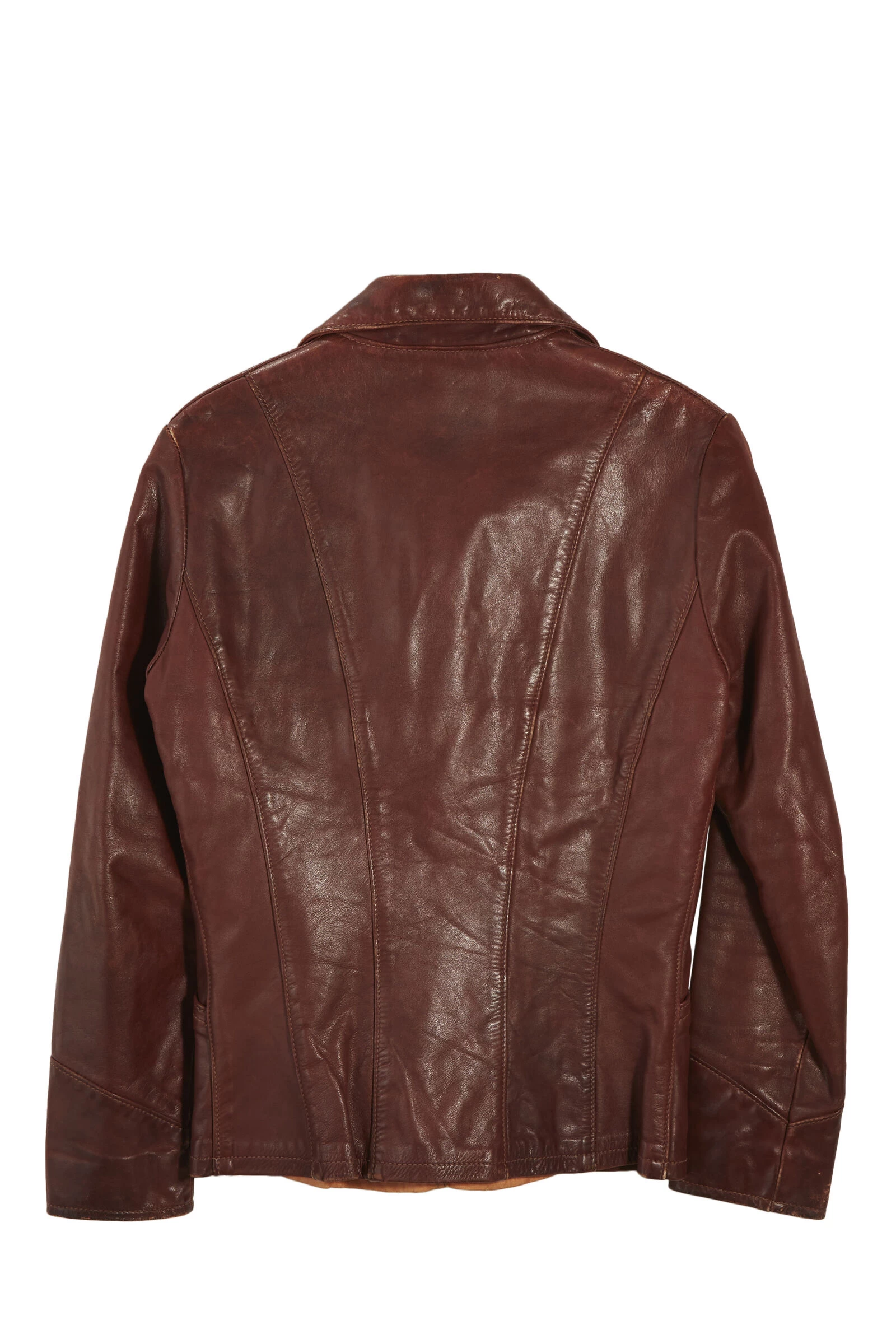 A vintage and highly collectible piece, this 1970s custom Oshwahkon jacket is crafted in burgundy leather featuring gold-tone metal zip. Crafted in New York City, Oshwahkon debuted in 1971 took inspiration from the 1960s counterculture movement and youth generation that defined the decade.