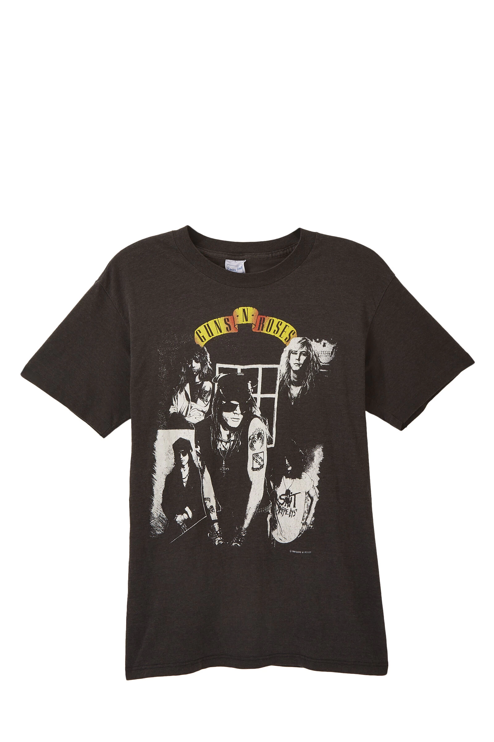 1988 Guns N’ Roses vintage album tee promoting their debut album ‘Appetite For Destruction.’ An image of the band is featured on the front, while the band and album name is featured on the reverse.