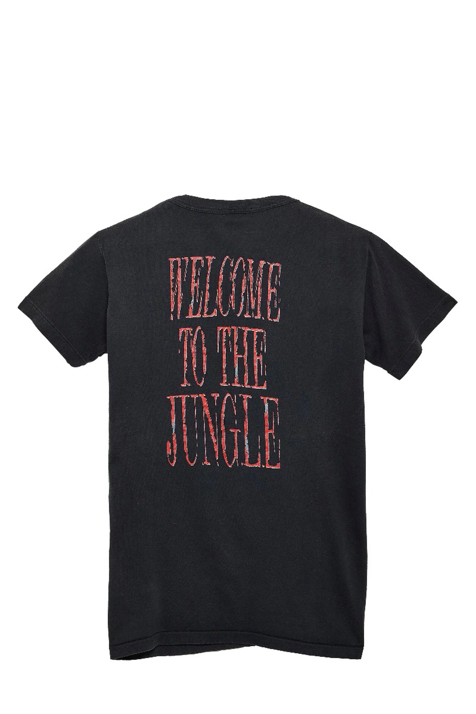 1989 Guns N’ Roses vintage tee promoting their debut studio album, Appetite for Destruction, with a multicolor graphic print of the band on the front and hit track “Welcome to the Jungle” printed on the back.