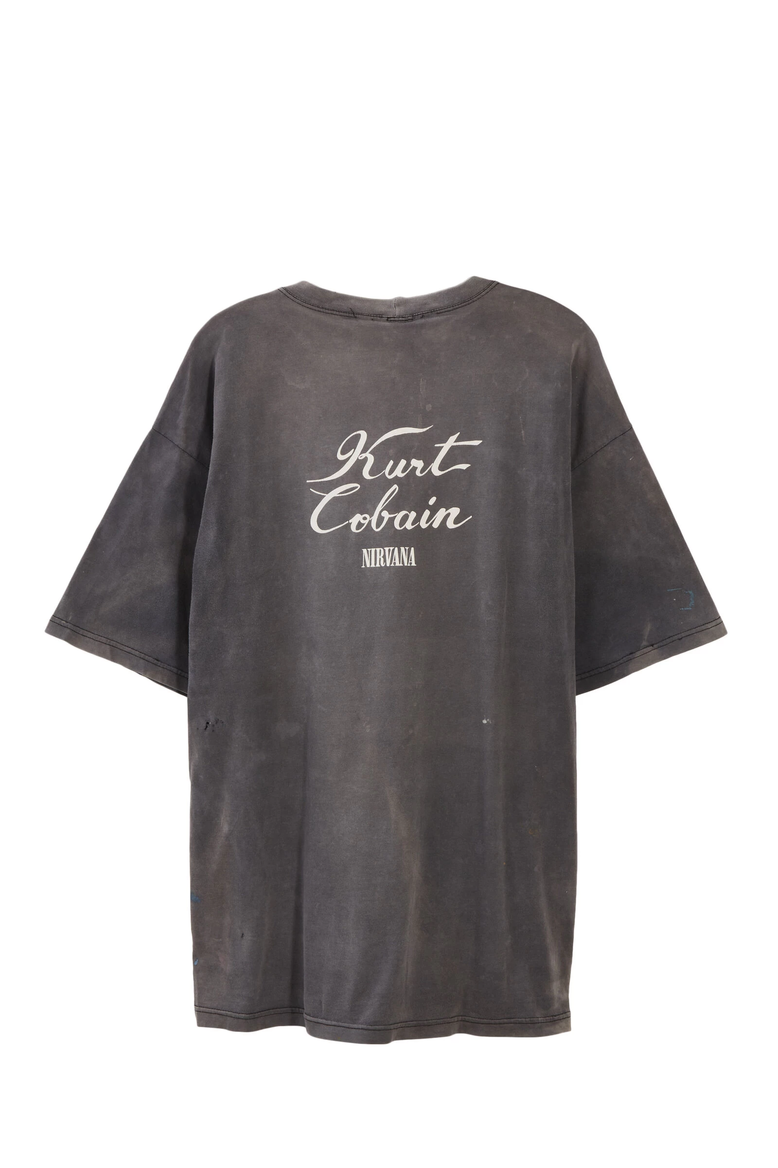 1990’s grey Kurt Cobain vintage graphic tee. This vintage tee features a graphic image of Kurt Cobain, as well as his name and the band’s name ‘Nirvana’ on the back.