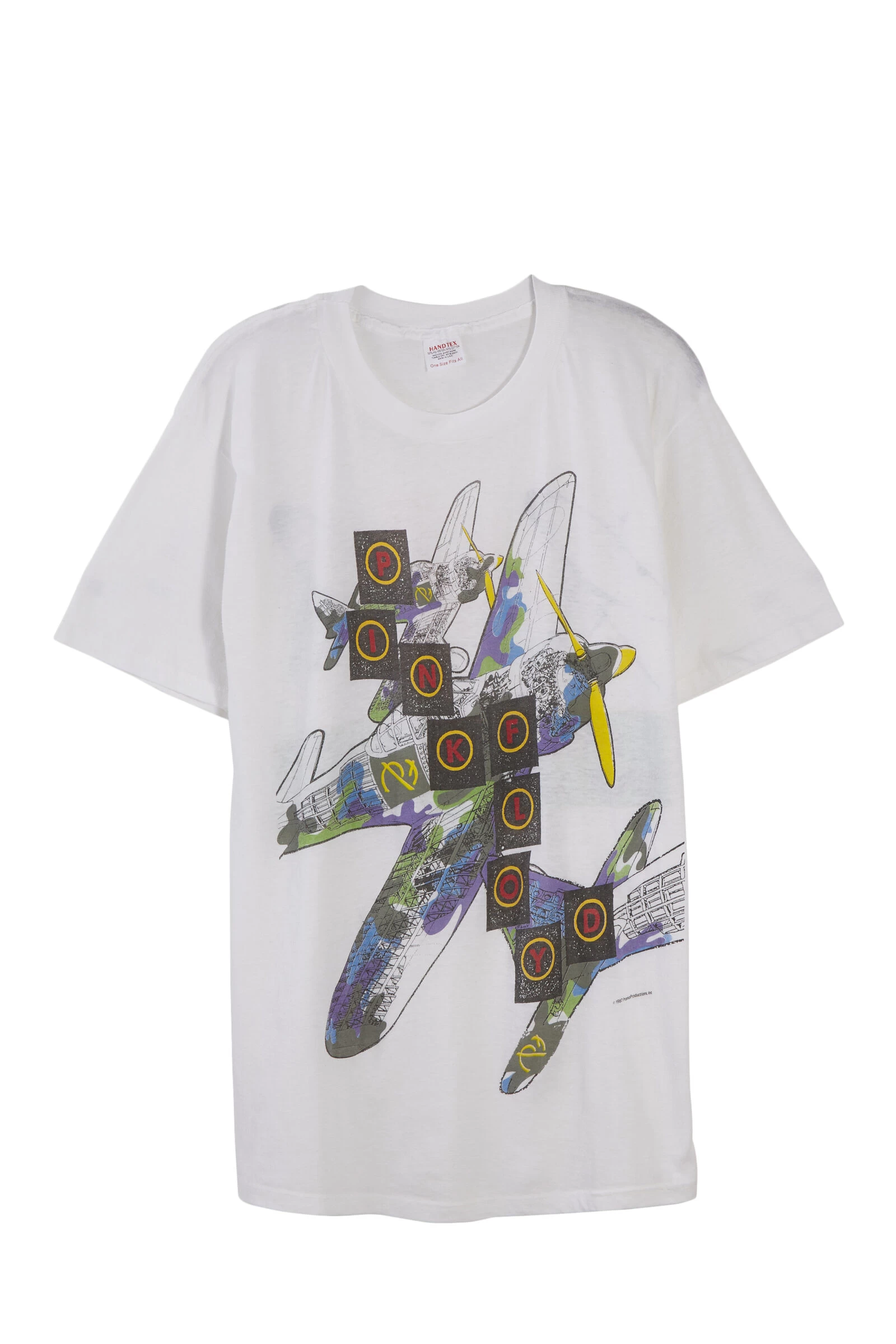 1987 Pink Floyd World Tour vintage tee. Features multicolored graphic images on both front and back of tee, along with the band’s name.