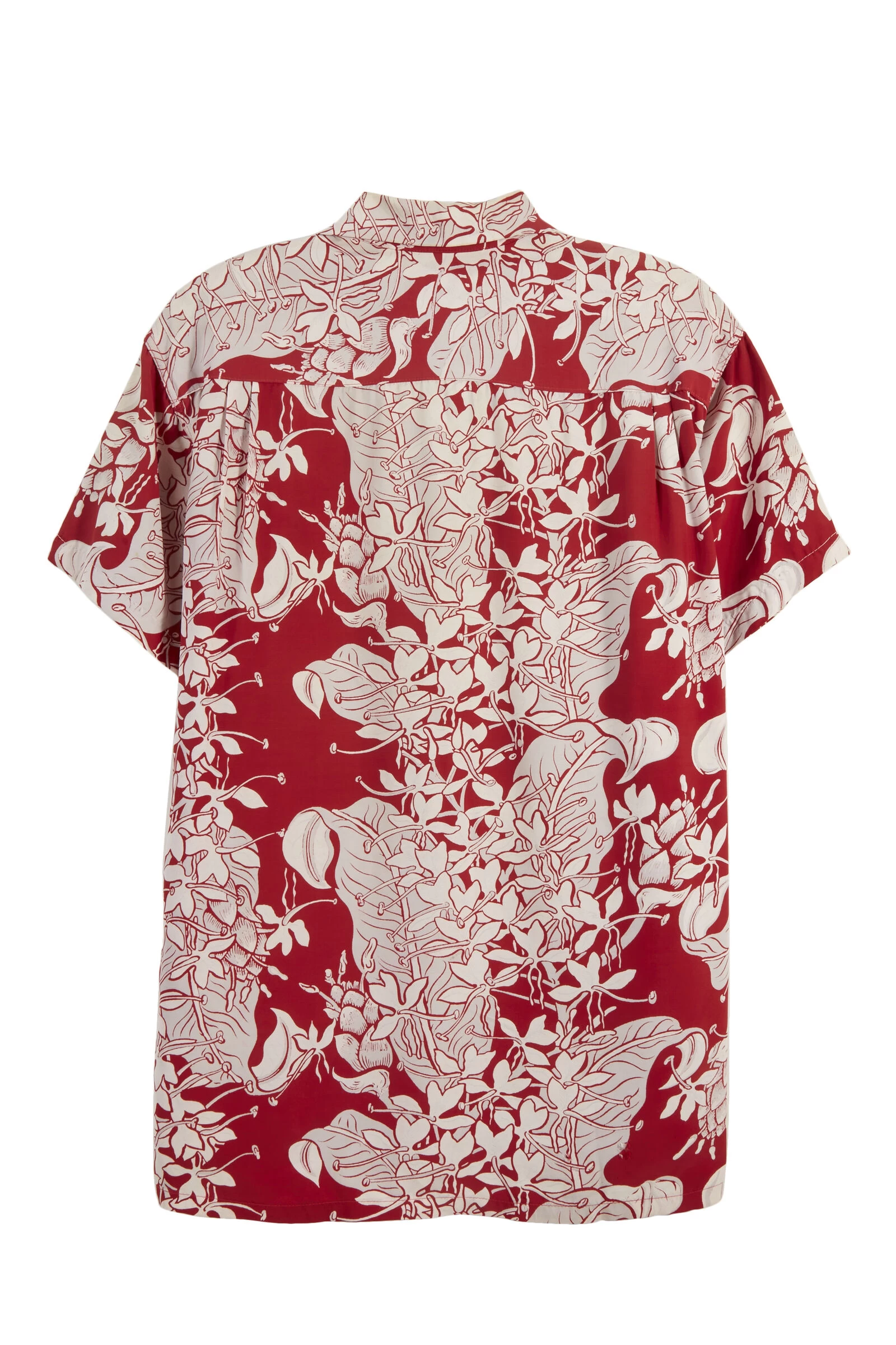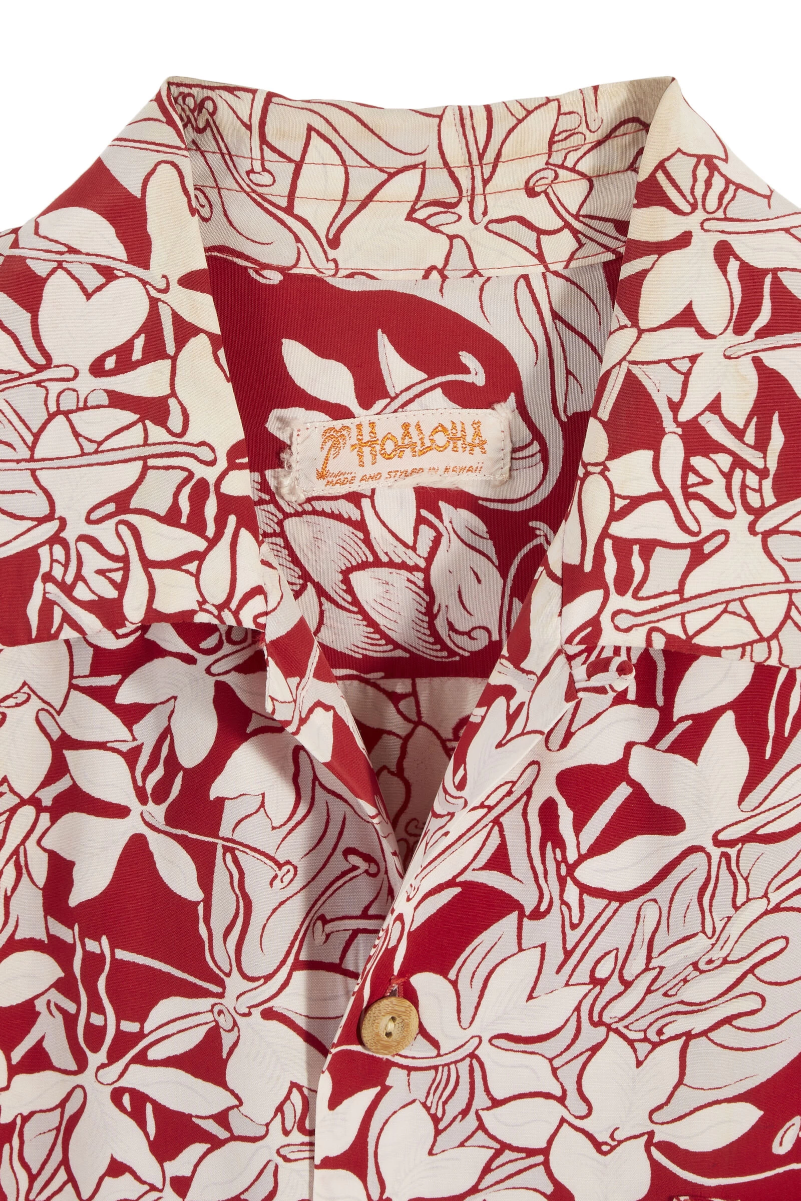 This classic Hawaiian shirt from Hoaloha is rendered in a red and white floral-print. Featuring a single slip pocket and button down closure.